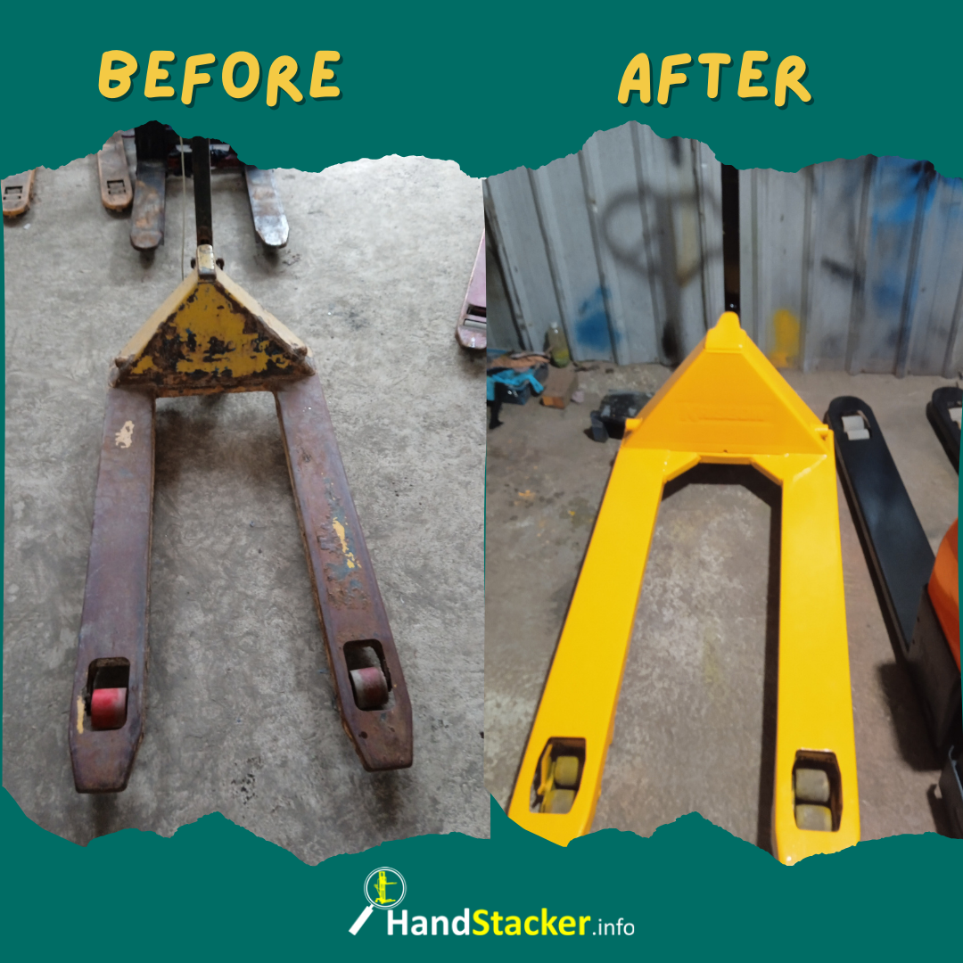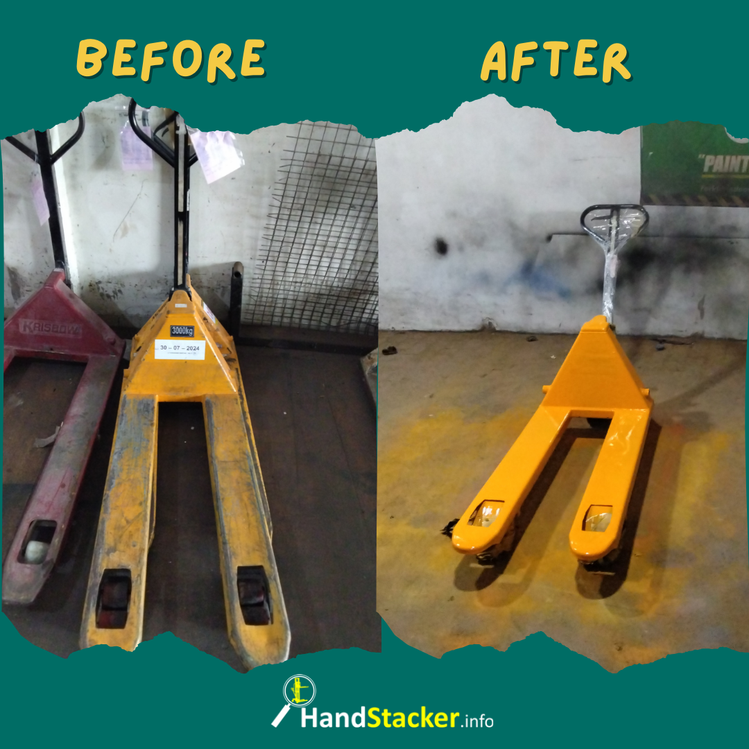 Hand Pallet anda bermasalah? selain itu mengalami kerusakan yang cukup parah? Serahkan pada HandStacker.info! Kami menerima berbagai jenis keluhan dan kerusakan seperti kebocoran oli, hidrolik tidak berfungsi, roda macet, tuas angkat patah, handle longgar, piston aus, pompa rusak, dan rem tidak berfungsi. Kami siap memperbaikinya dengan tenaga ahli berpengalaman dan spare part yang berkualitas. Layanan cepat, bergaransi, dan terpercaya. Kemudian jangan biarkan alat kerja Anda menghambat produktivitas percayakan perbaikan hanya pada HandStacker.info